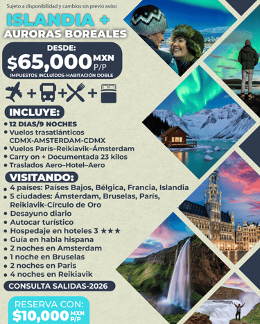 Reserva con $3,000 MXN Por persona- OFERTA HASTA EL 27 DE DICIEMBRE 2025- Después de esta fecha se reserva con $10,000mxn (No cancelable, no reembolsable) págalo poco a poco! Mensual - Quincenal o semanal! Tu decides cuando y cuánto