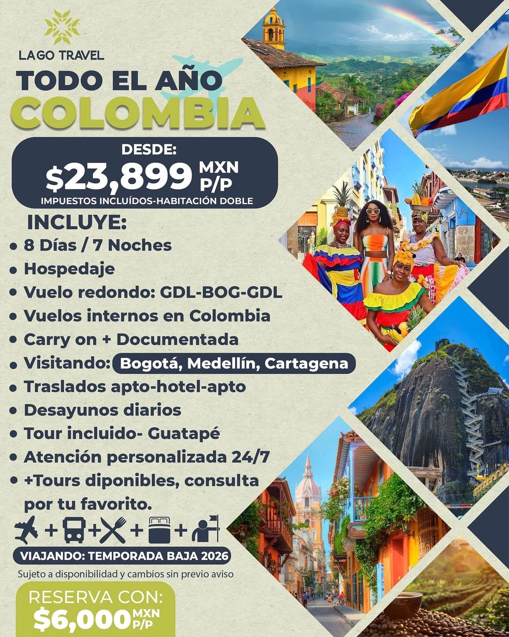 Reserva con $6,000 MXN por persona (No cancelable, no reembolsable)