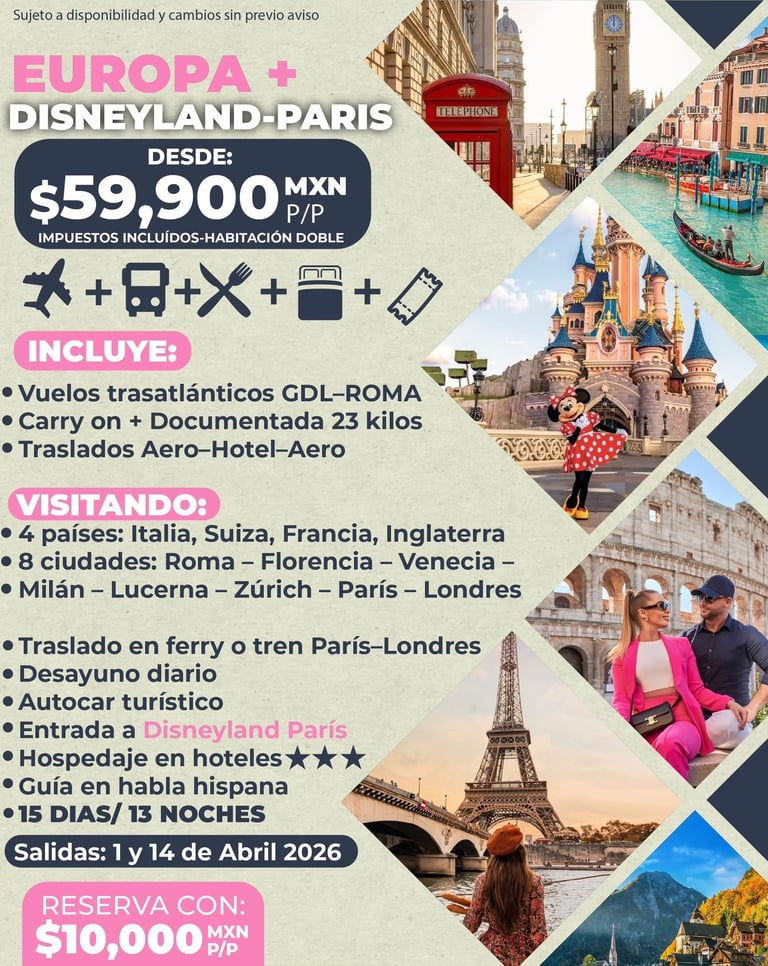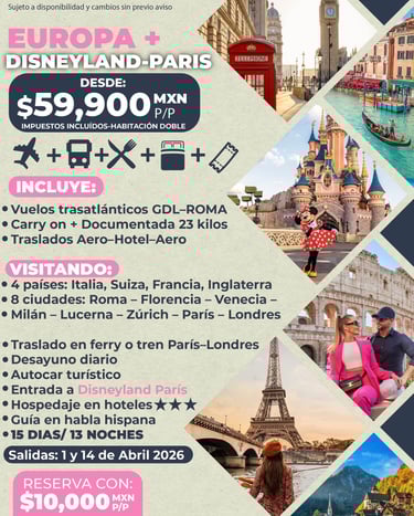Reserva con $3,000 MXN Por persona- OFERTA HASTA EL 20 DE DICIEMBRE 2025- Después de esta fecha se reserva con $10,000mxn (No cancelable, no reembolsable) págalo poco a poco! Mensual - Quincenal o semanal! Tu decides cuando y cuánto